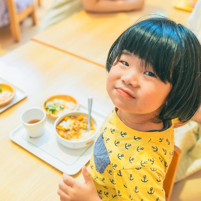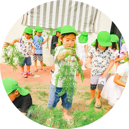 栽培や調理体験を通じて子どもたちが食への興味を持ち、感謝の心を育てる食育を実施しています。季節の食材や行事食を取り入れ、楽しく食べる・食べたくなる環境を整えています。